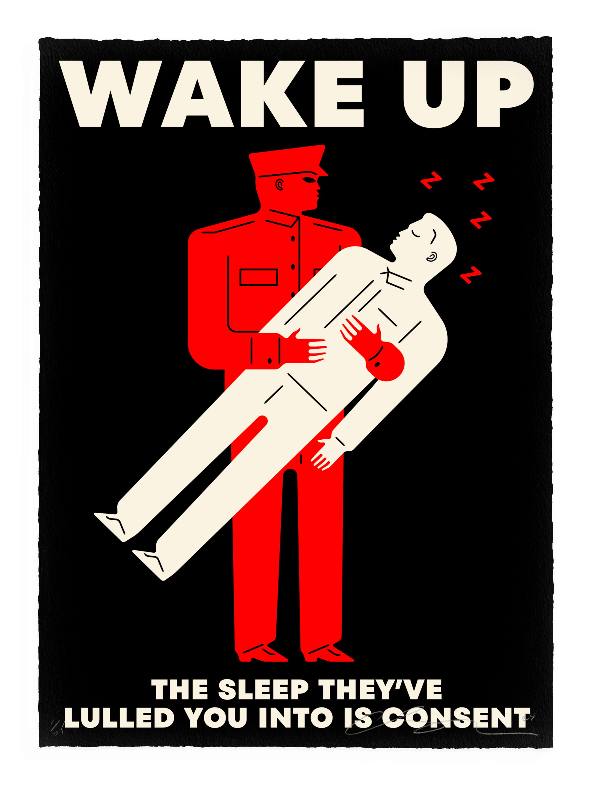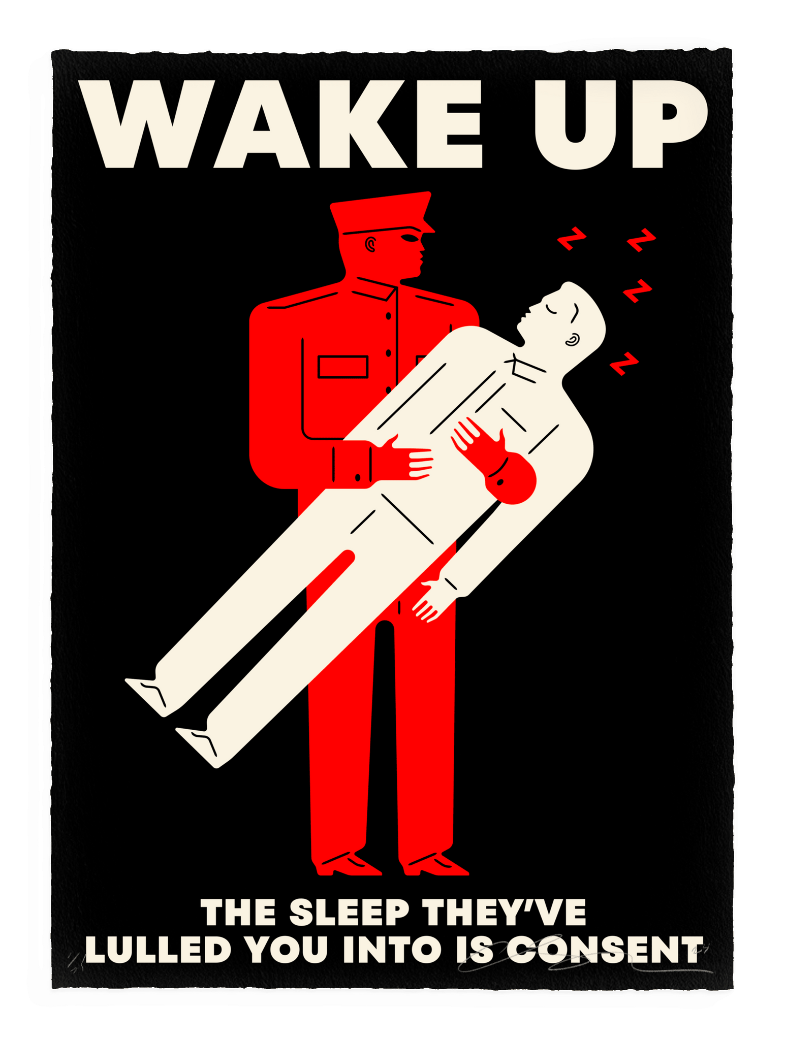 Two hand-pulled black and red screen prints. Each print measures 13w x 18”h. Printed on 290gsm Arches Rag paper with deckled edges. Edition of 75. Each print is signed and numbered.
